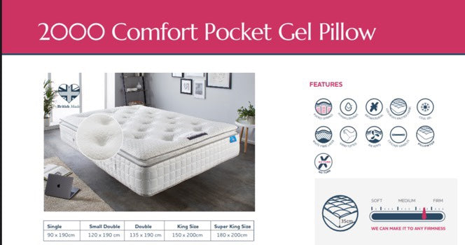 Experience superior comfort and support with our 2000 Pocket Gel Mattress, designed to enhance sleep quality and provide long-lasting durability.