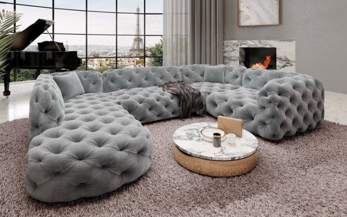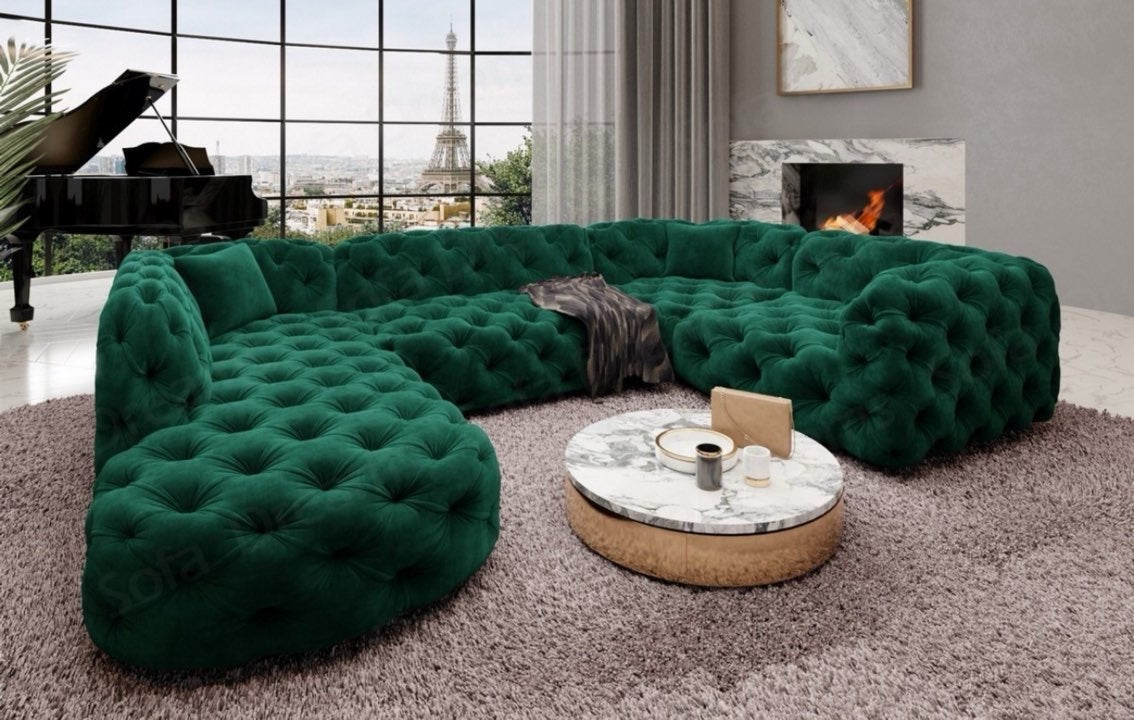 The Curved Chesterfield U-Shape Sofa blends iconic classic design with contemporary sophistication. Featuring the signature Chesterfield deep button tufting and a beautifully curved silhouette, this sofa elevates any living space with its luxurious presence. Its spacious U-shape layout provides ample room for family gatherings, entertaining guests, or relaxing in refined comfort.