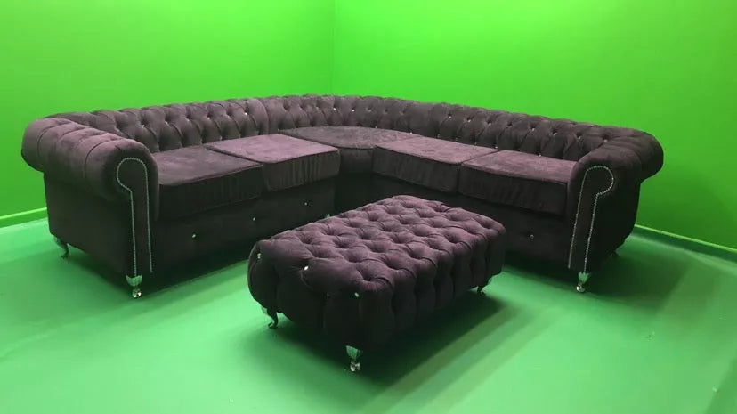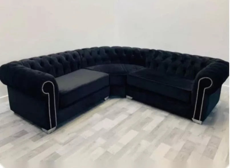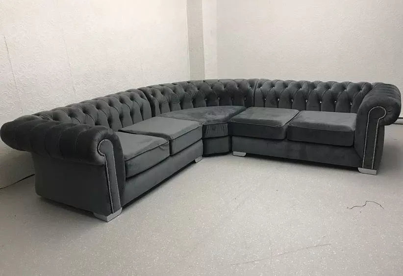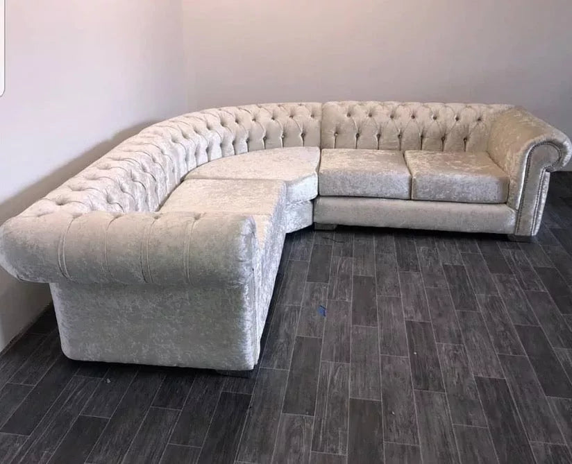 Elevate your home with the Freda Chesterfield Sofa, a statement piece that combines classic charm with modern sophistication. Available in a straight 8ft x 8ft layout or a stunning curved 9ft x 9ft design, this sofa brings both style and comfort to any living space.