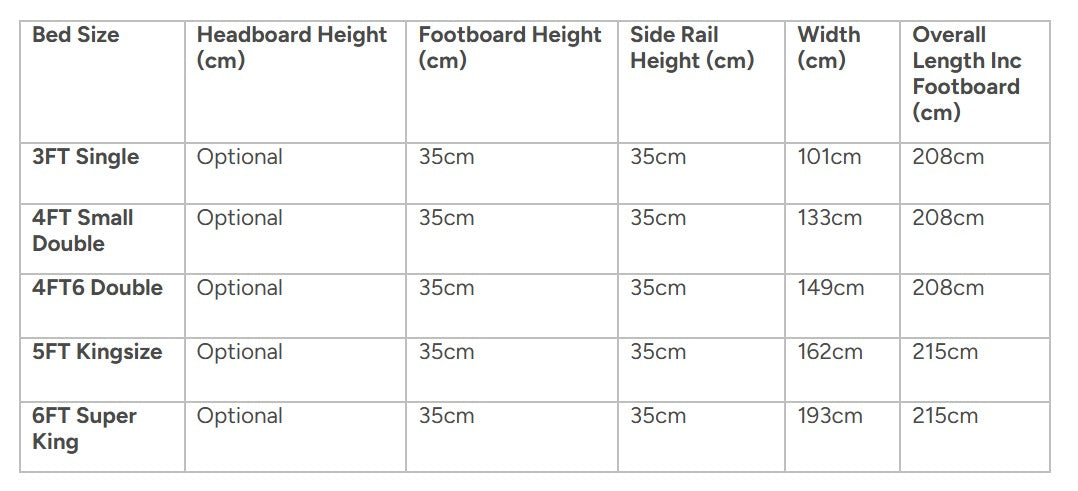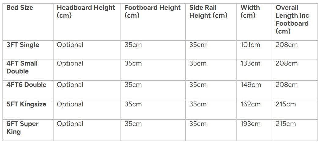 • Footboard Height: 35 cm