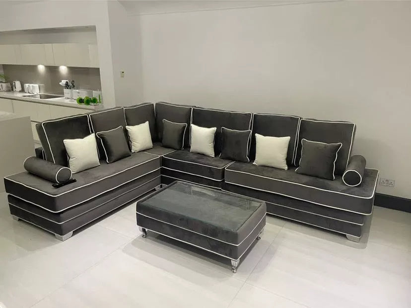 Shown in an 8ft x 10ft configuration, the Zara is fully customizable to perfectly complement your home. For a tailored, designer finish, an optional contrast piping detail can be added to elevate its aesthetic. Whether paired with a matching footstool or a 30 x 46 coffee table, this sofa offers a cohesive and stylish setup to suit your interior.